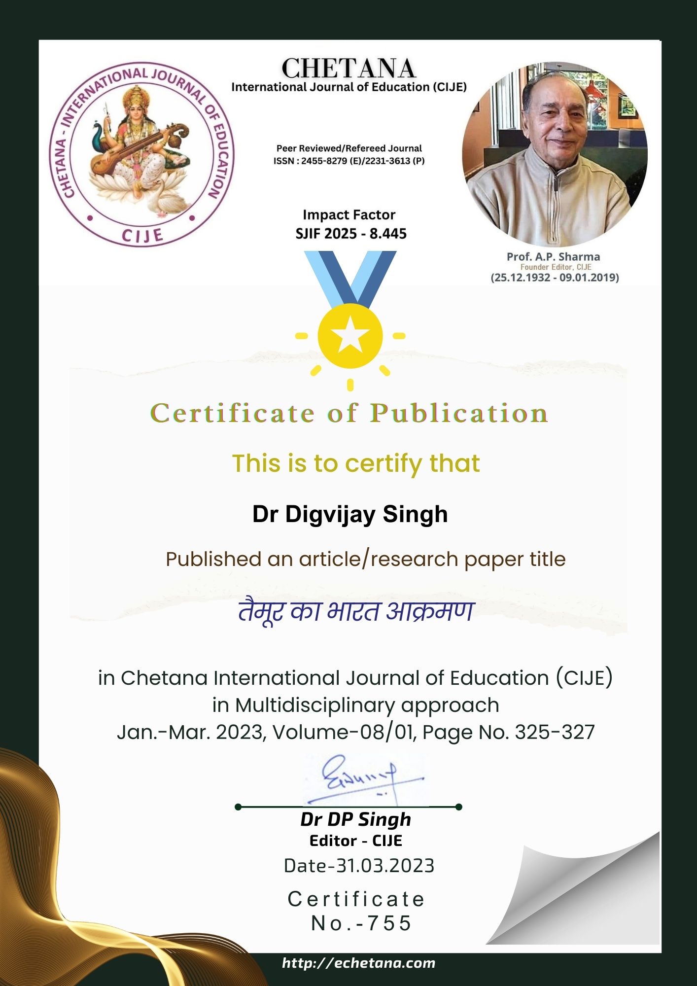 Chetana is an international educational journal published by Pt. Chakoli Ram Educational and Social Development Society, Dholpur, Rajasthan.  Its first issue, named as CHETANA, was published in 2008-09. It accepted articles, containing any sort of educational issues relating to human life. However, looking to its popularity and a large number of reading clients, since 2016 onwards the journal has been promoted to an international level. Now the journal is known as “Chetana International Journal of Education” and would go on accepting articles from most contributors who highlight some kind of human issues and provide their probable solutions. If such contributions reach the editors at least one month before the publication of the journal they are likely to be accepted. Articles received later on and are worth publication, could be likely to be considered by the editorial board for the next issue. The editorial board has the sole right to accept or reject an article for publication. If an article is found unsuitable, it may be rejected and sent back to the author. The contributors, whose articles are accepted, will always be informed before its publication provided the authors’ addresses, emails, and phone numbers are provided to the editorial board.